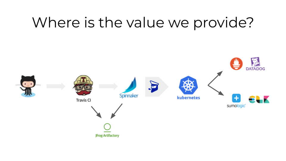We bundle GitHub, Travis, Artifactory, Spinnaker, FIAAS, Kubernetes, Prometheus, Datadog, Sumologic, ELK.